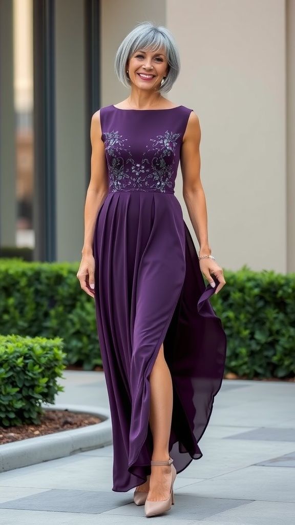 Simple A Line Purple Appliques Mother of the Bride/Groom Dress Evening Formal Dress