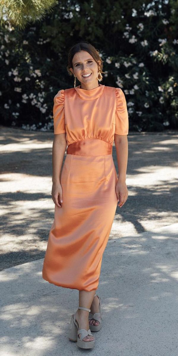 Orange Sheath Short Sleeve Tea-length Mother of the Bride/Groom Dress Evening Formal Dress