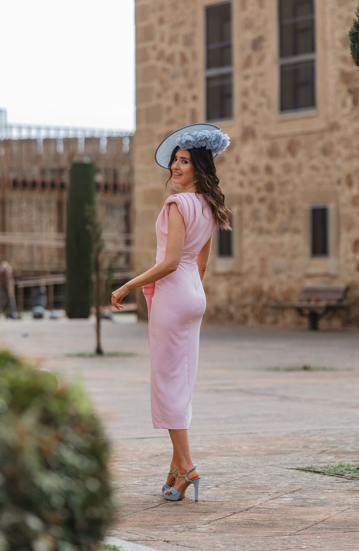 Pink Sheath V Neck Tea-length Mother of the Bride/Groom Dress Evening Formal Dress