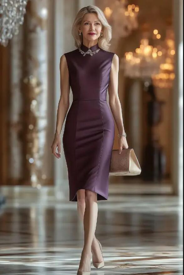 Purple Tea-length Satin Mother of the Bride/Groom Dress Evening Formal Dress