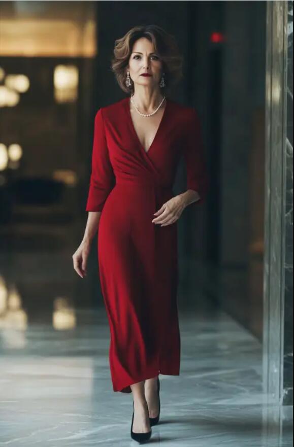 Red Sheath Tea-length Mother of the Bride/Groom Dress Evening Formal Dress