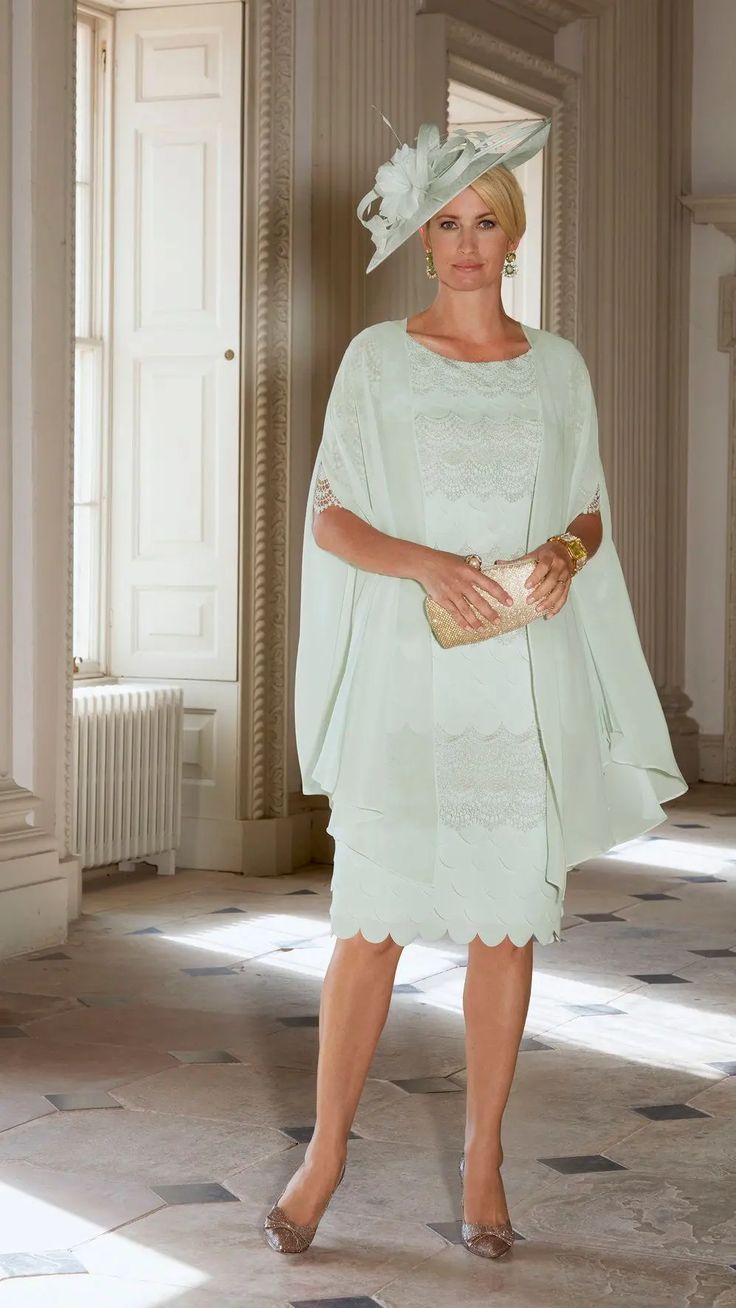 Mint Green Chiffon Tea-length Mother of Bride/Groom Dress Evening Formal Gown