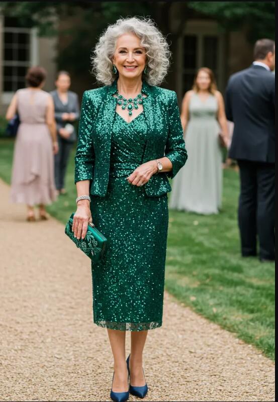 Green Sheath Sequins Lace Tea-length with Jacket Mother of Bride/Groom Dress Evening Formal Gown