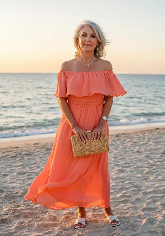 Orange A Line Off the Shoulder Chiffon Mother of Bride/Groom Dress Evening Formal Gown