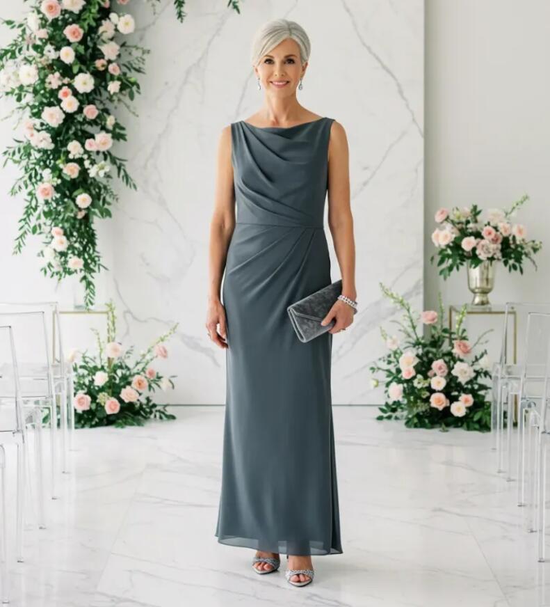 Blue Sheath Off the Shoulder Mother of Bride/Groom Dress Evening Formal Gown