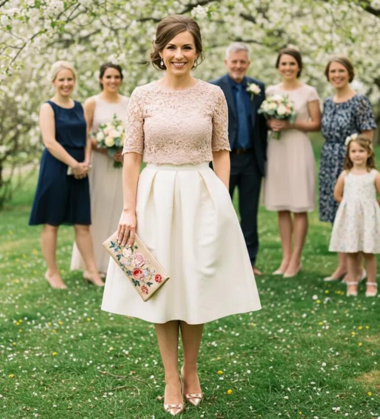Two Pieces Tea-length Mother of Bride/Groom Dress Evening Formal Gown