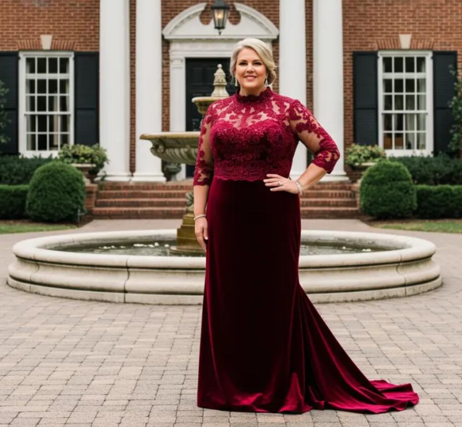 Plus Size Burgundy WIne Red Velvet Two Pieces Mother of Bride/Groom Dress Evening Formal Gown