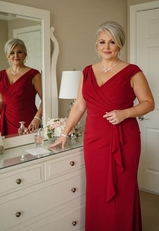 Plus Size Red Satin Mother of Bride/Groom Dress Evening Formal Gown