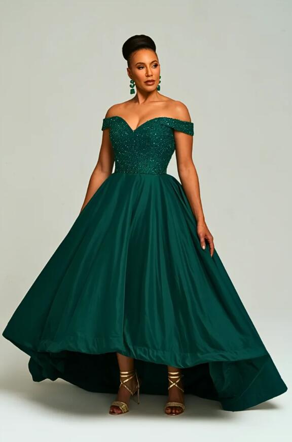Green A Line Tea-length Off the Shoulder Lace Mother Of The Bride Dresses Formal Evening Dress