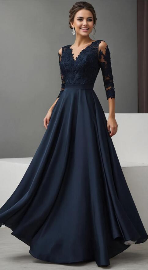 Elegant A Line Navy Blue A Line Lace Mother Of The Bride Dresses Formal Evening Dress