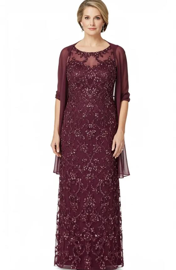 Wine Red Sheath Sequins Lace Mother of Bride/Groom Dress Evening Formal Gown