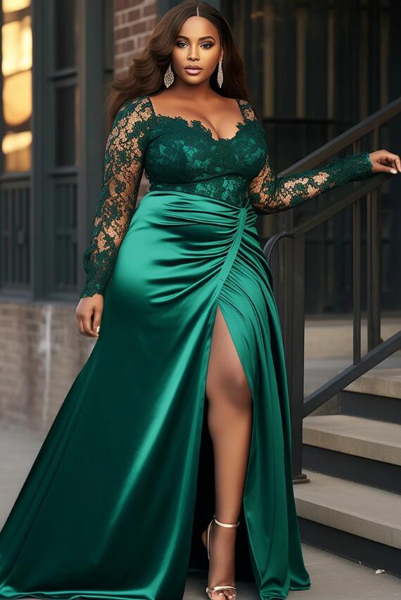 Emerald Green Sheath Lace Side Slit Mother Of The Bride/ Groom Dresses Formal Evening Dress