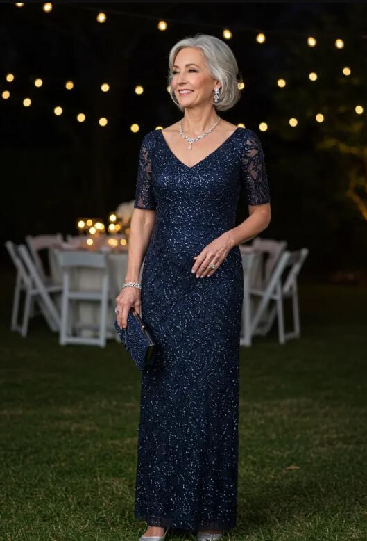 Navy Blue Sheath Sequins Lace Mother Of The Bride/ Groom Dresses Formal Evening Dress
