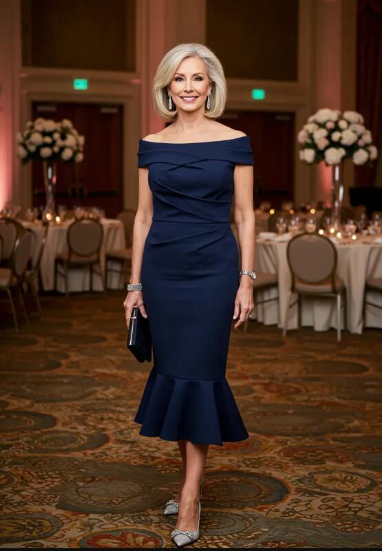 Elegant Sheath Navy Blue Ankle-length Mother Of The Bride/ Groom Dresses Formal Evening Dress
