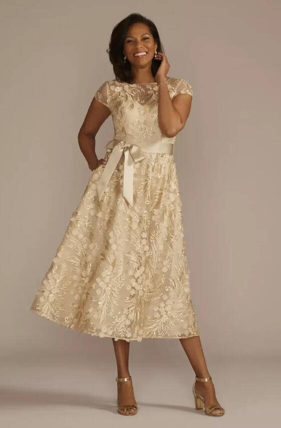 Elegant A Line Lace Tea-length Mother Of the Bride/ Groom Dresses Formal Evening Dress