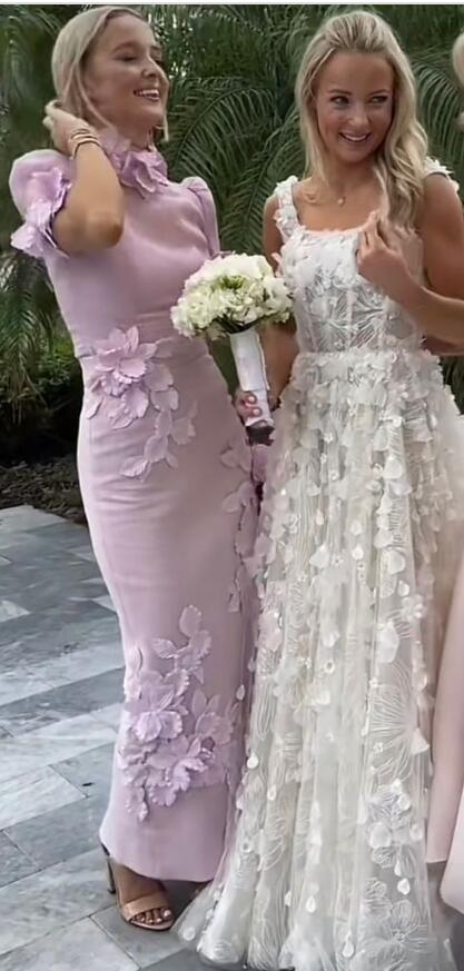 Elegant Pink Sheath Lace Appliques Tea-length Mother Of the Bride/ Groom Dresses Formal Evening Dress
