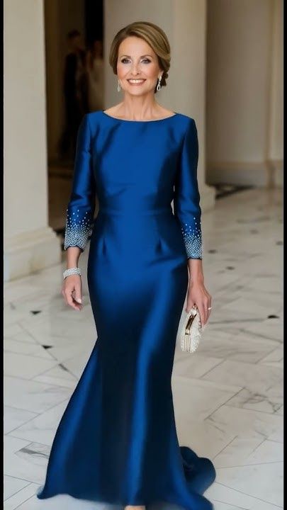 Elegant Sheath Royal Blue Satin Mother Of The Bride/ Groom Dresses Formal Evening Dress