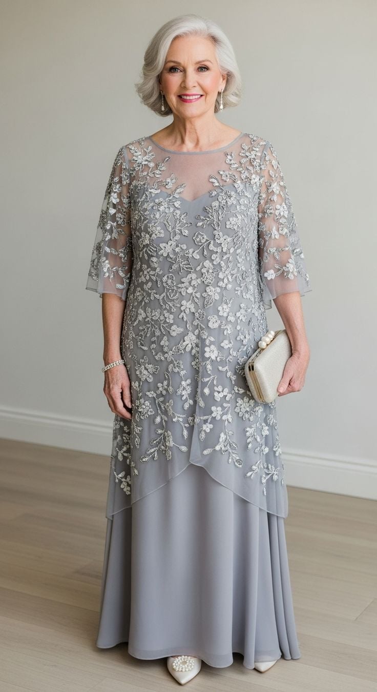 Plus Size Grey Chiffon Appliques Mother Of Bride /Groom Dresses Evening Formal Gown
