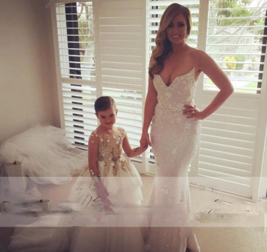 Flower Girls Dresses Appliques Lace Long Sleeve Party Birthday Tutu Christmas Gown Train Toddler Pageant Dress Gowns Custom