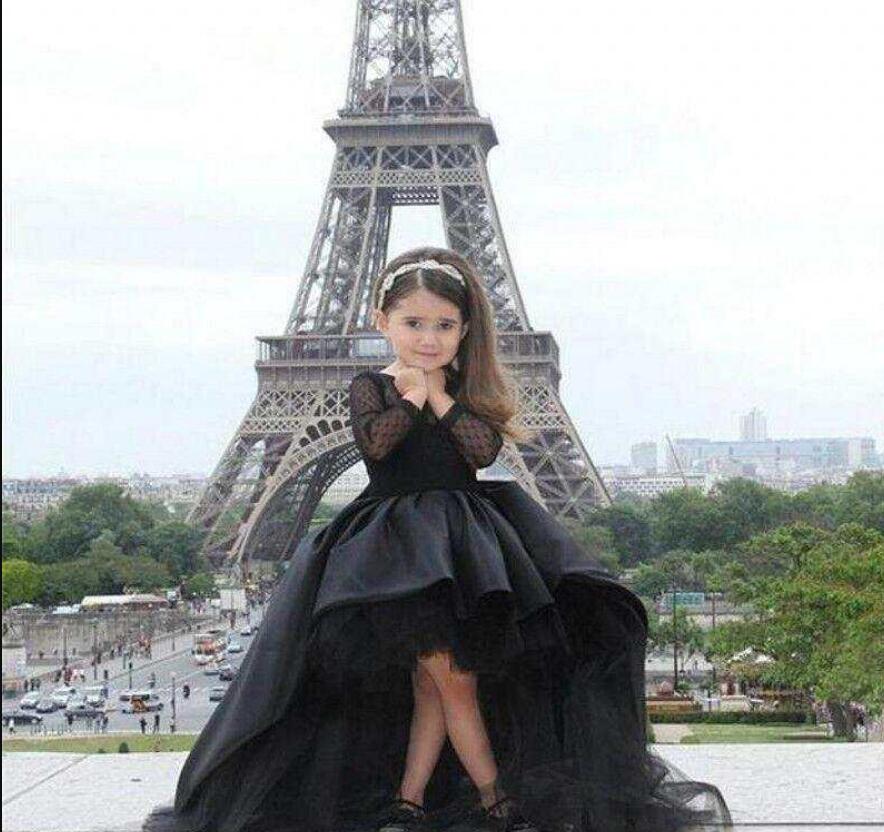 Long Sleeves Little Girls Pageant Dresses Black High Low Jewel Flower Girl Dresses For Teens Formal Holy Communion Dresses