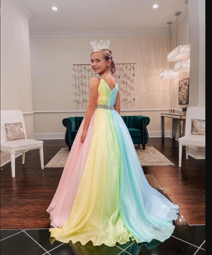 Rainbow Chiffon Little Girl Pageant Dresses Straps-Neck Girls Prom Gowns Zipper V Back Sleeveless A-Line Long Kids Formal Party Birthday Princess Wear