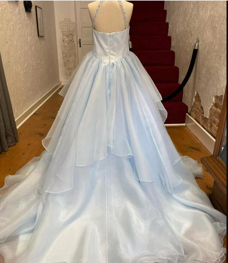 Light Ice Blue Girl Pageant Dress Crystals Beading Ruffles Organza little Kid Birthday Formal Party Long Gown Toddler Teens Preteen
