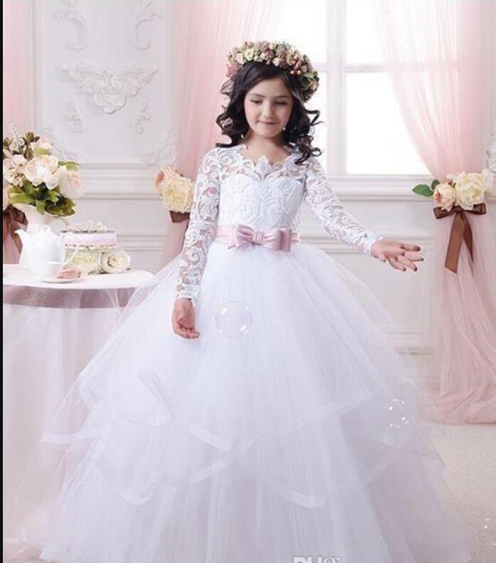 Flower Girl Dresses for Weddings Lace Long Sleeve Girls Pageant Dresses First Communion Dress Little Girls Prom Ball Gown