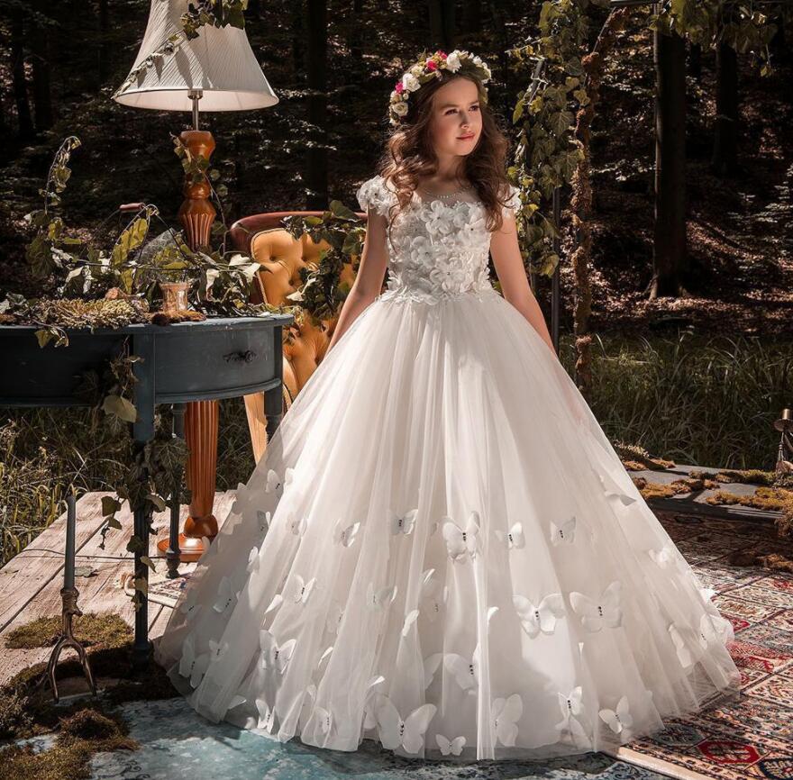 Flower Girl Dress Tulle Beading Appliqued Pageant Dresses For Girls First Communion Dresses Kids Wear