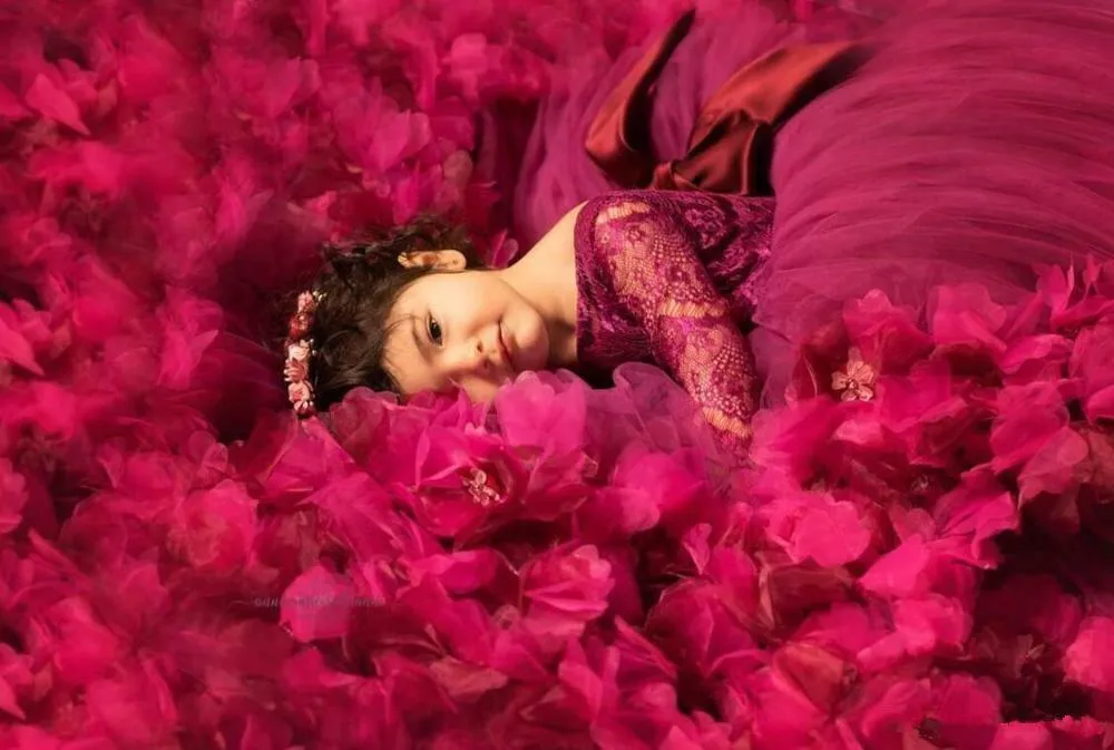 Puffy Flower Girls Dresses 3D Flower V Neck Long Sleeve Kids Teens Pageant Gowns Birthday Party Dress For Wedding Cooktail Gown