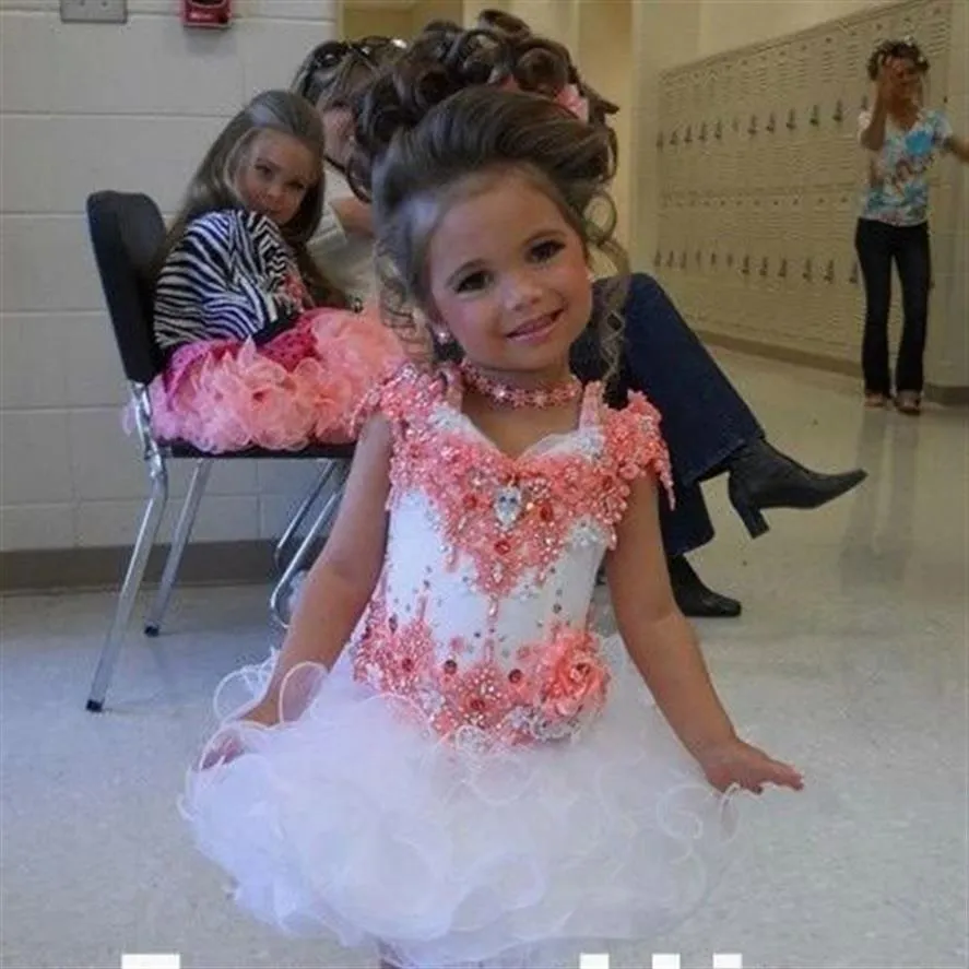 White and Pink Ball Gown Flower Girl Dresses For Wedding Beading Girls Pageant Gowns Kid Party Dresses