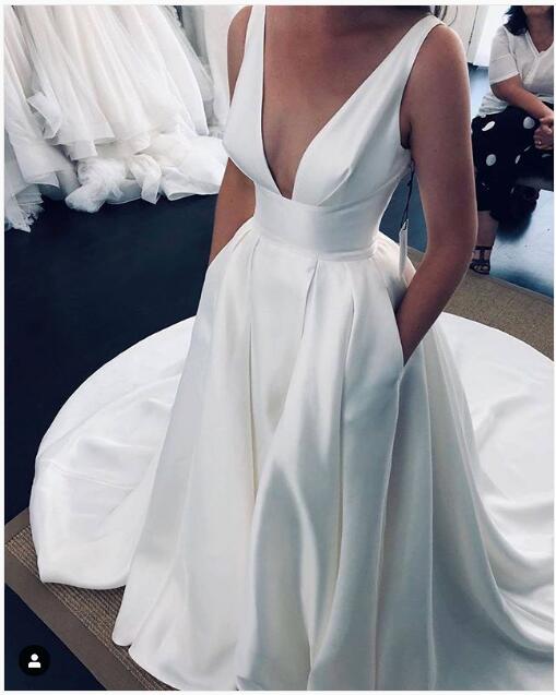Simple Wedding Dress Sexy Deep V Neck Ball Gown Wedding Bridal Gowns