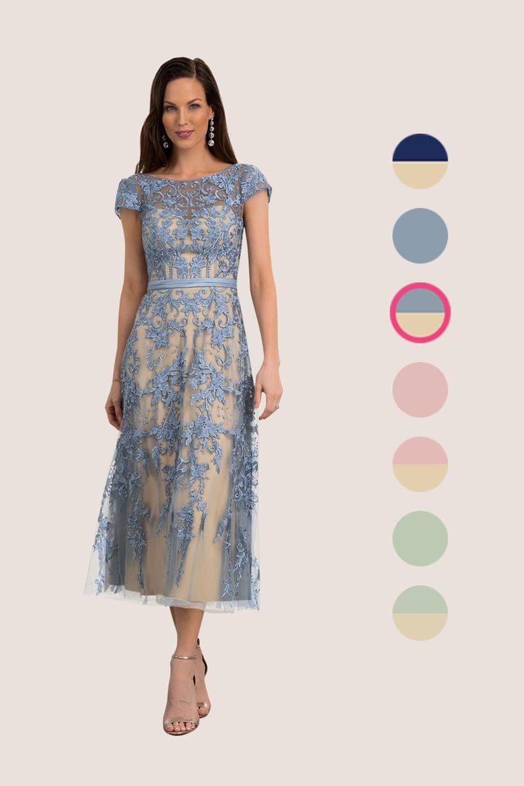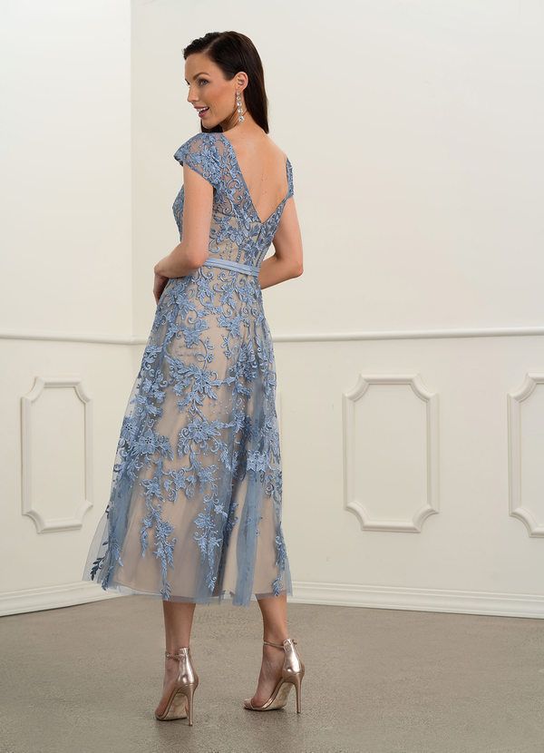Blue Lace Tea-length Mother of Bride Dress Evening Dress