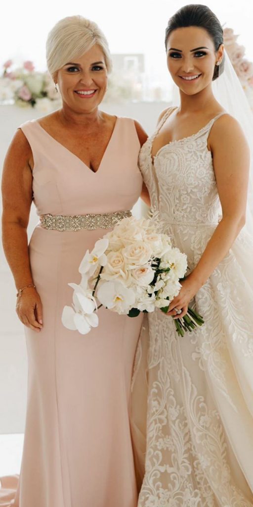 Blush Pink V Neck Beaded Plus Size Mother of Bride Dress Evening Dress