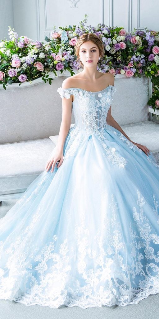 Modest Blue Princess Appliques Lace Wedding Dress Wedding Bridal Gowns