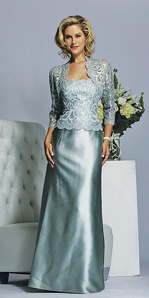 Elegant Sheath Blue Lace with Jacket Mother of Bride and Groom Dress Evening Dress