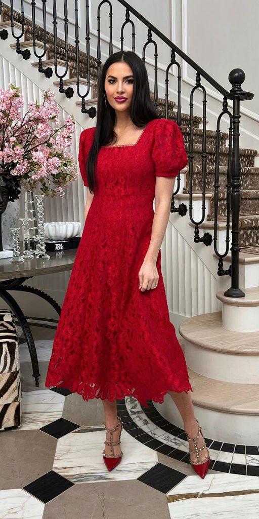 Simple Red Lace Tea-length Prom Dress Evening Dress