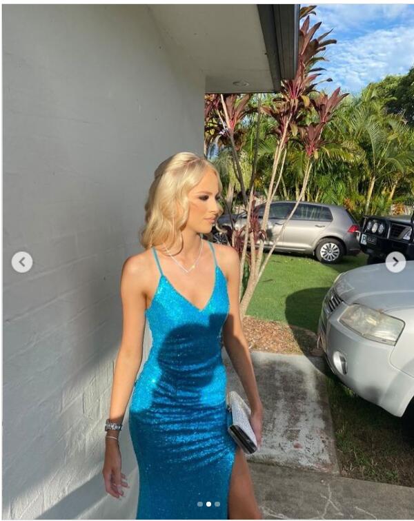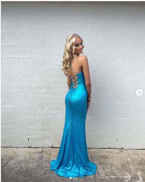 Blue Mermaid Sequins Prom Dress Evening Dress