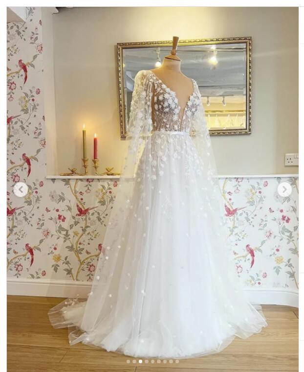 Simple A Line Beach 3D Handmade Flower Wedding Dress Wedding Bridal Gowns