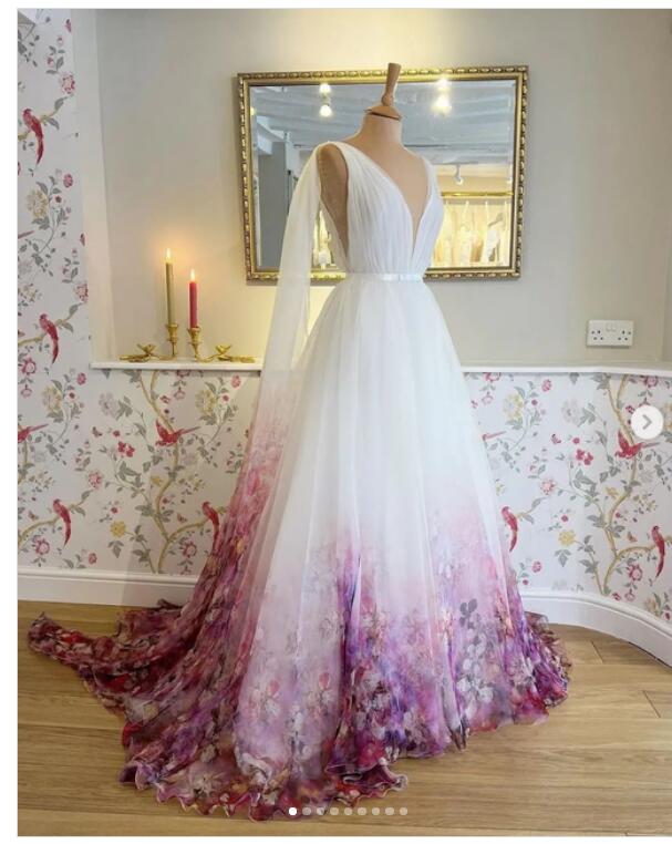Ombre Purple Flower Floral Wedding Dress Wedding Bridal Gowns