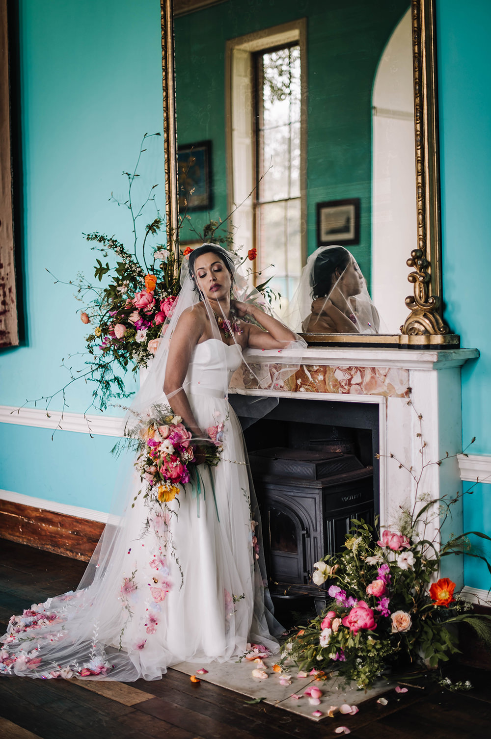 Beautiful Stapless Flower Floral 3D Handmade Flowers Wedding Gowns(include the veil)