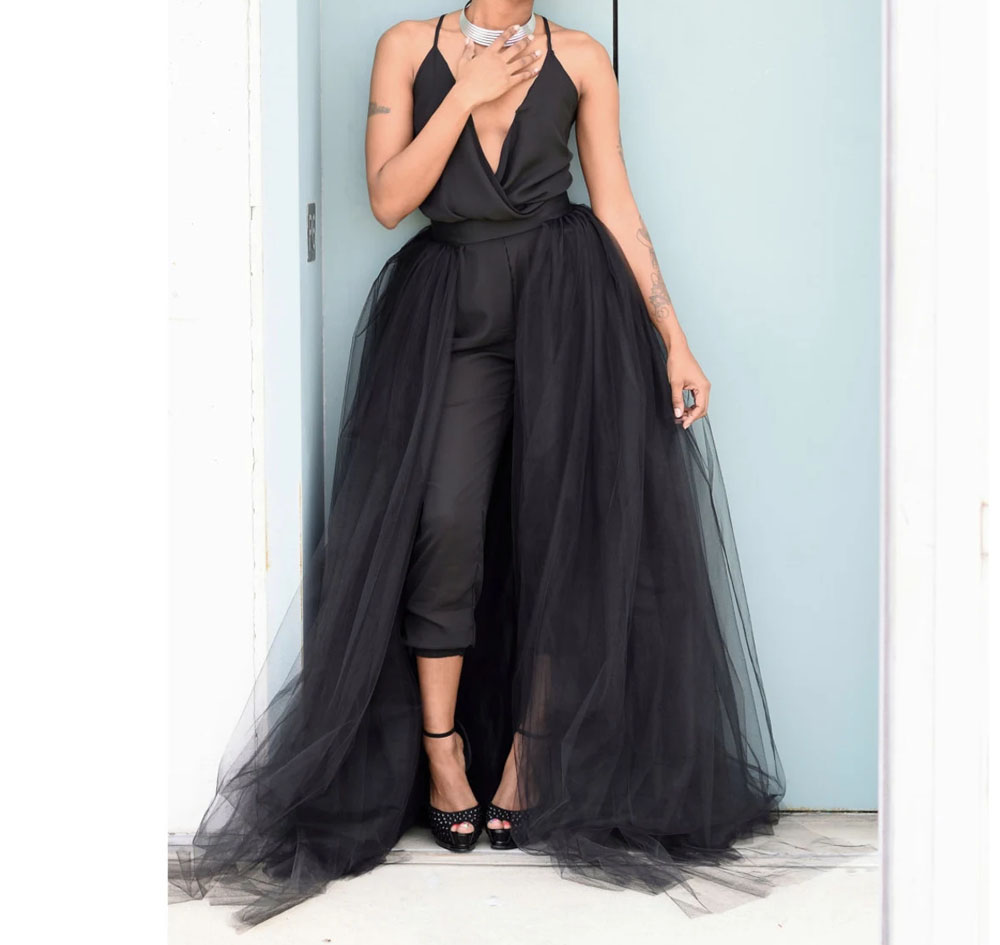 Black Wedding Jumpsuit Bridal Jumpsuit with Detachable Skirt