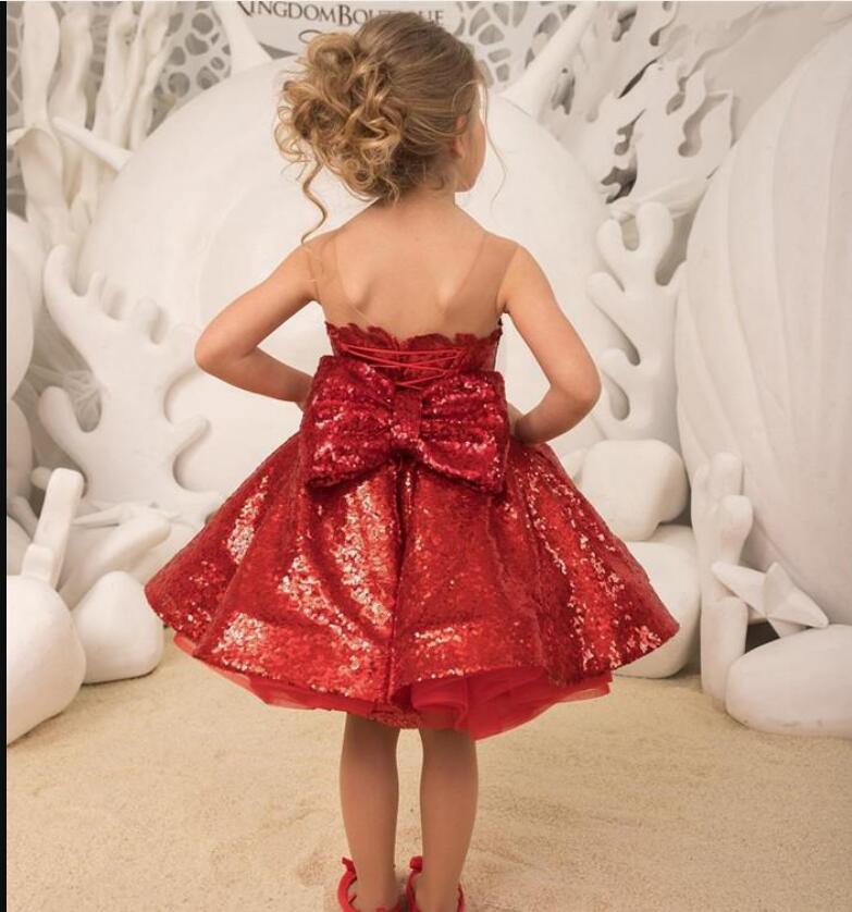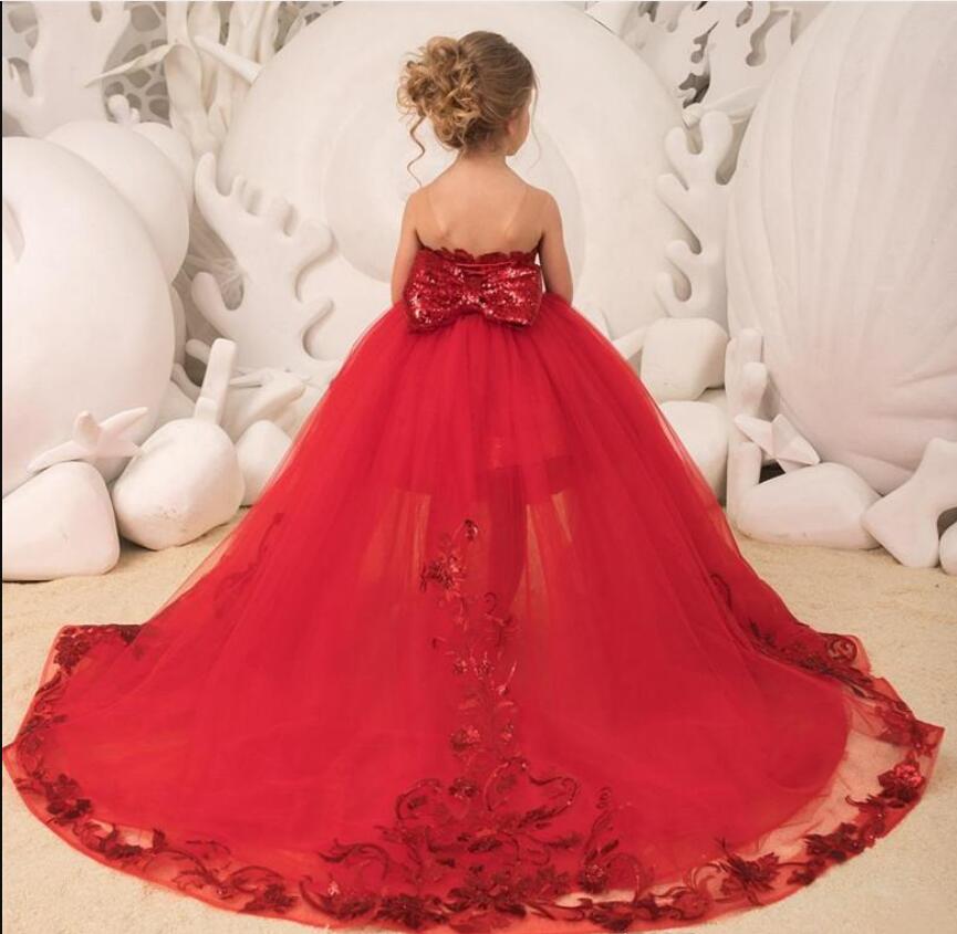 Sparkle Sequins Little Girls Pageant Dresses Removable Tulle Train Ballgown Hi Lo Kids Christmas Birthday Party Gowns Flower Girl Dress