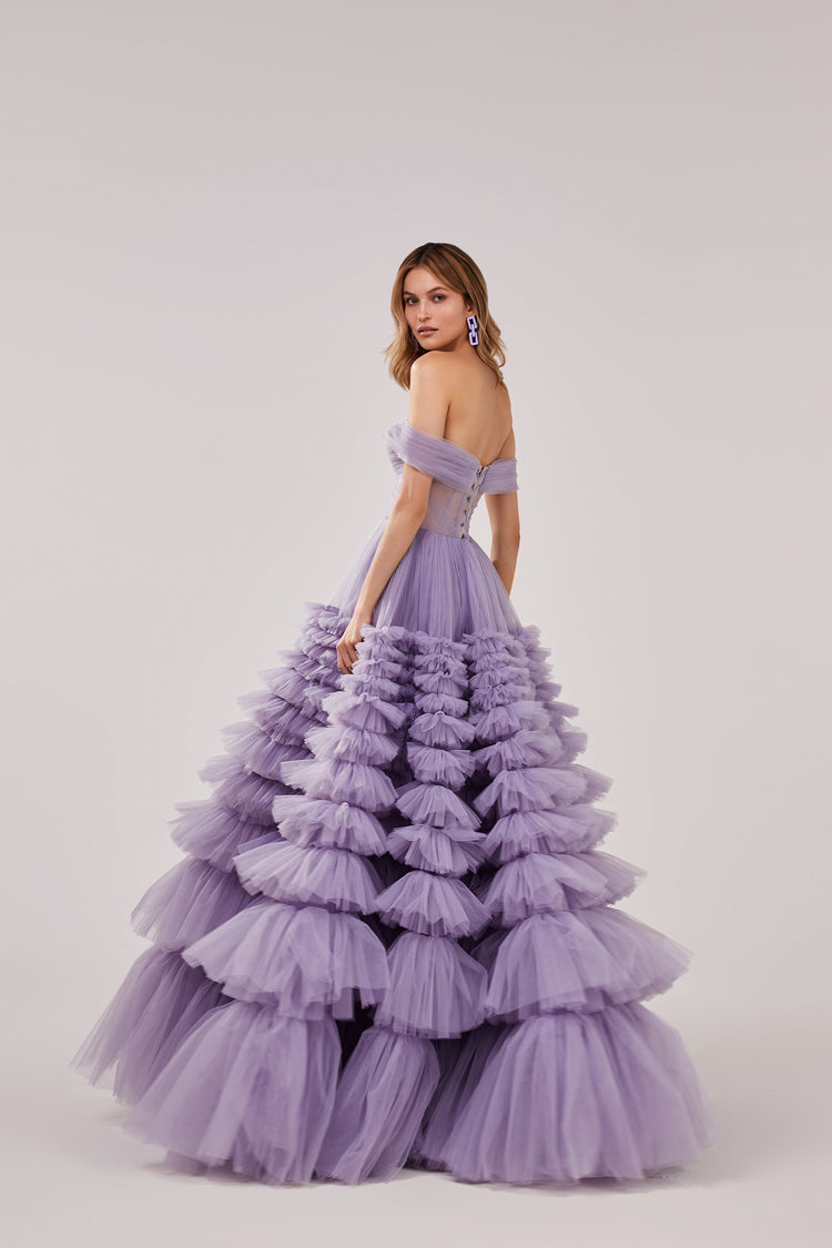 Lavender Tiered Prom Dresses Sweetheart Off the Shoulder Ruffled Long Evening Dress Lace-up Wedding Party Gown