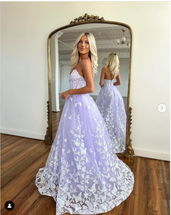 Purple Ball Gown Butterfly Lace Prom Dress Party Dress