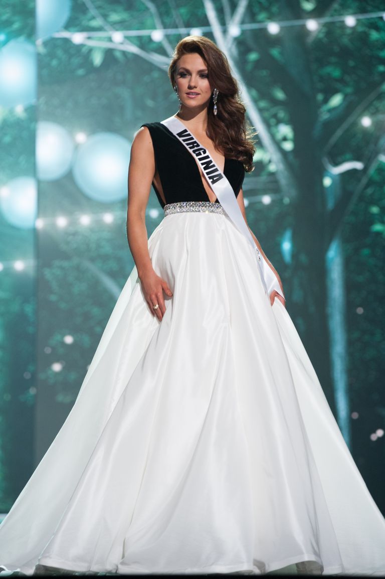 Sexy White and Black V Neck Miss USA Prom Dress Evening Dress