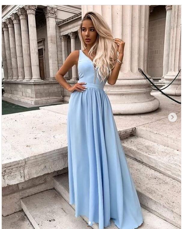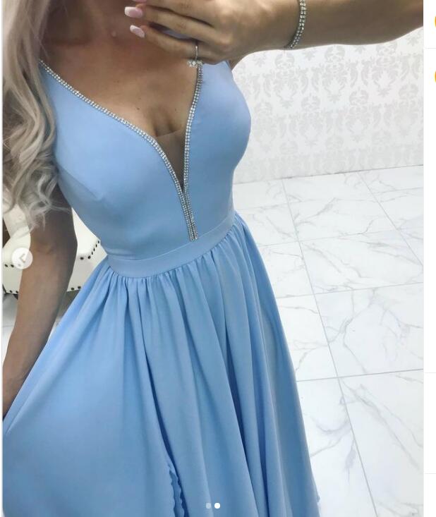 Blue Simple A Line Chiffon Prom Dress Cocktail Dress