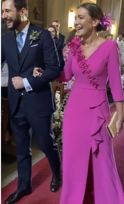 Hot Pink Fuchsia Sheath Mother of Bride and Groom Dress Evening Dress