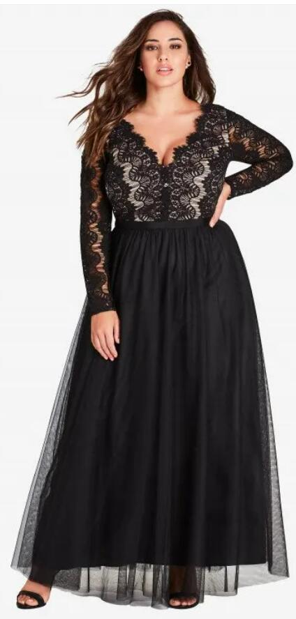Black Plus Size Lace Mother of Bride and Groom Dress Evening Dress