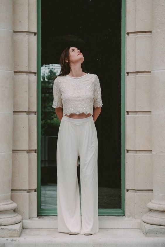 Simple Lace Two Pieces Beach Boho Wedding Jumpsuit Bridal Jumpsuit
