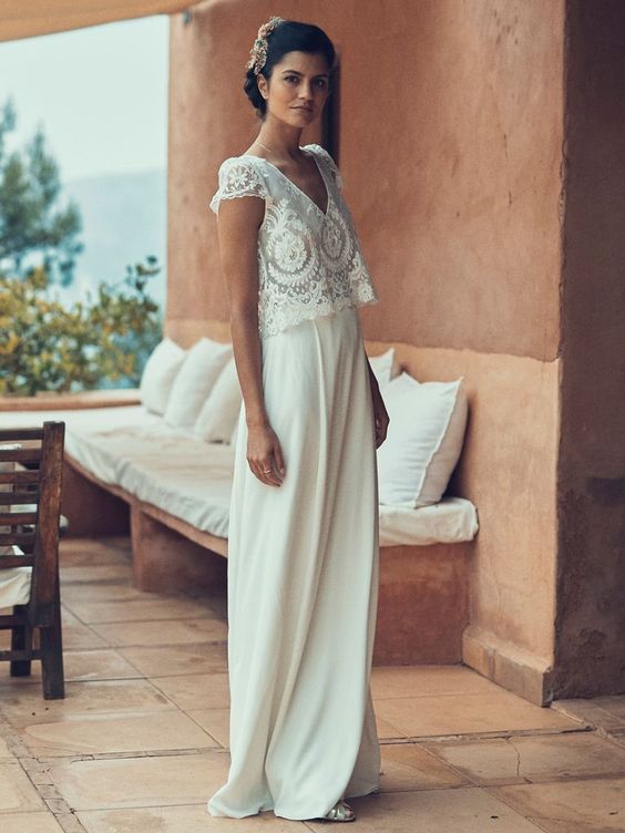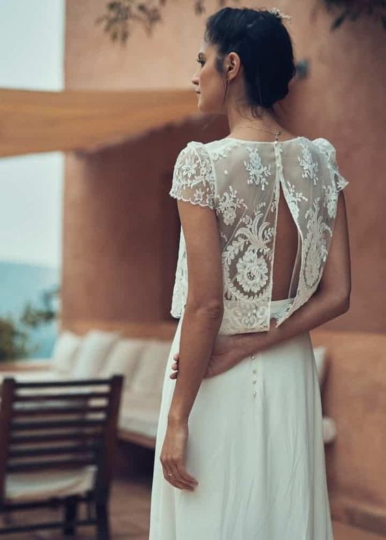 Simple Chiffon Two Pieces Lace Beach Boho Wedding Dress Bridal Dress